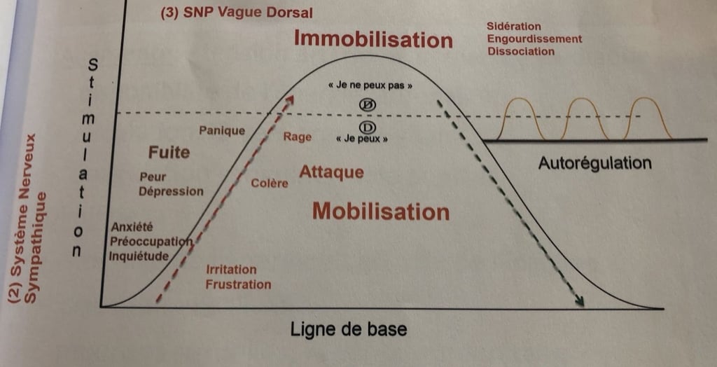 Sans rentrer dans les détails, il faut savoir que la découverte de Porges au sujet du fonctionnement du système nerveux, est que celui-ci permet non pas deux, mais trois réponses: