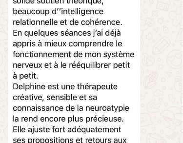 D'être moi-même neuroatypique et d'être sortie d'une amnésie suite à des violences sexuelles dans l'enfance, je pense pouvoir comprendre beaucoup de symptômes, souffrances, processus que les personnes connaissent de part leur développement neurologique ou leur état de choc post-traumatique.